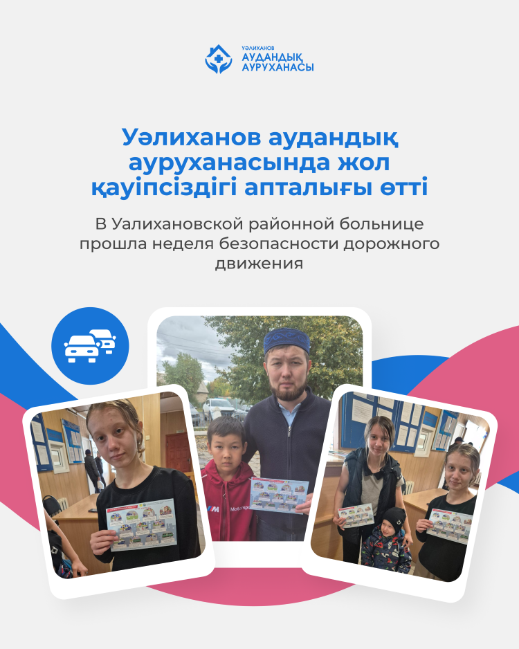 2025 жылғы 8 қыркүйекте Уәлиханов аудандық ауруханасында жол-көлік оқиғаларының алдын алу және тұрғындар арасында жолда қауіпсіз жүріс мәдениетін қалыптастыруға арналған апта өткізілді.
