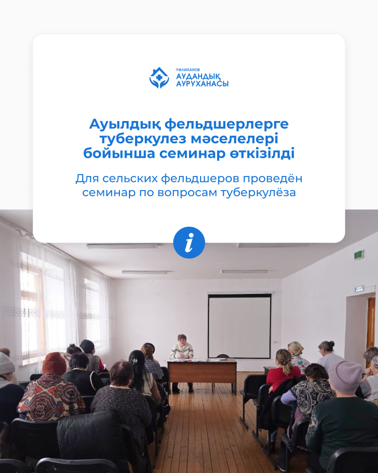 10 наурыз күні Уәлиханов аудандық ауруханасында ауылдық фельдшерлерге арналған семинар өтті. Іс-шара туберкулездің алдын алу, оны ерте анықтау және бақылау мәселелеріне арналды.