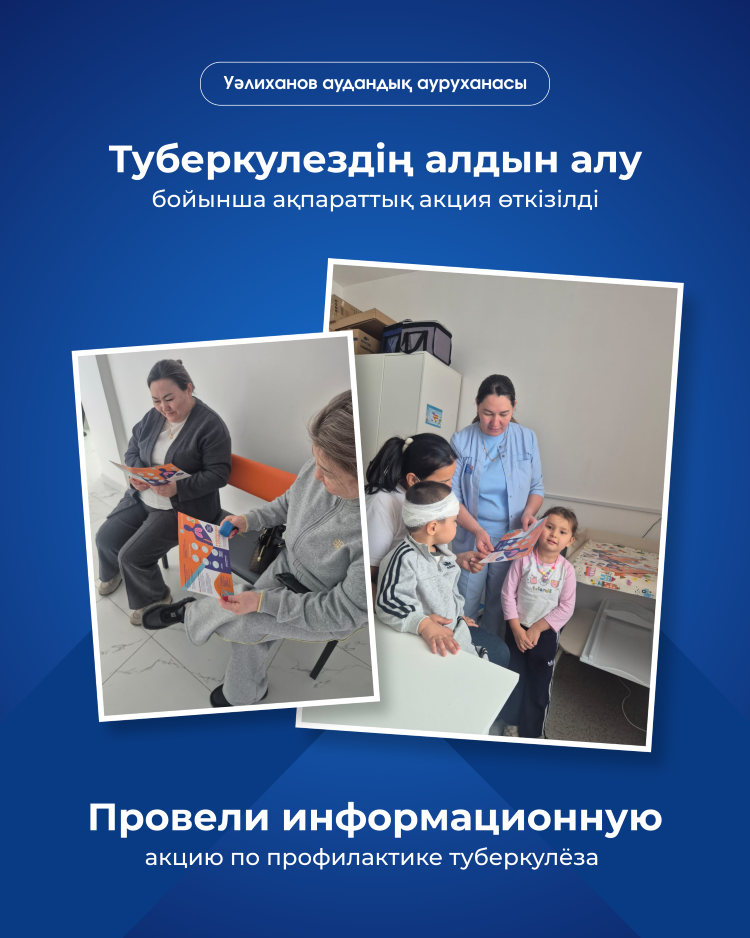 5 наурыз күні Уәлиханов аудандық ауруханасының қызметкерлері Дүниежүзілік туберкулезге қарсы күрес күні қарсаңында келушілер мен пациенттер арасында ақпараттық-түсіндіру жұмыстарын жүргізді.
